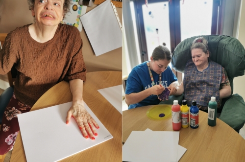 Residents from our LD unit at Woodside Grange enjoying arts and crafts making Halloween decorations for their Halloween Fest.